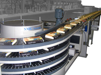 Avec un diamêtre ext. de 1740mm, Le Spiralveyor® PF Compact est la solution préconisée pour les petites lignes telles que Horizon, Quick-Binder, Vareo, Acoro-5, Sigloch, heidelberg, etc...