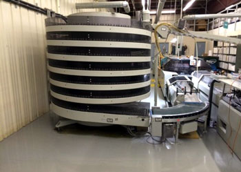 Avec un diamêtre ext. de 2240mm, Le Spiralveyor® PF Rapid est la solution préconisée pour les lignes de reliure à haute vitesse telles que CORONA, SYSTEM-BINDER, etc...